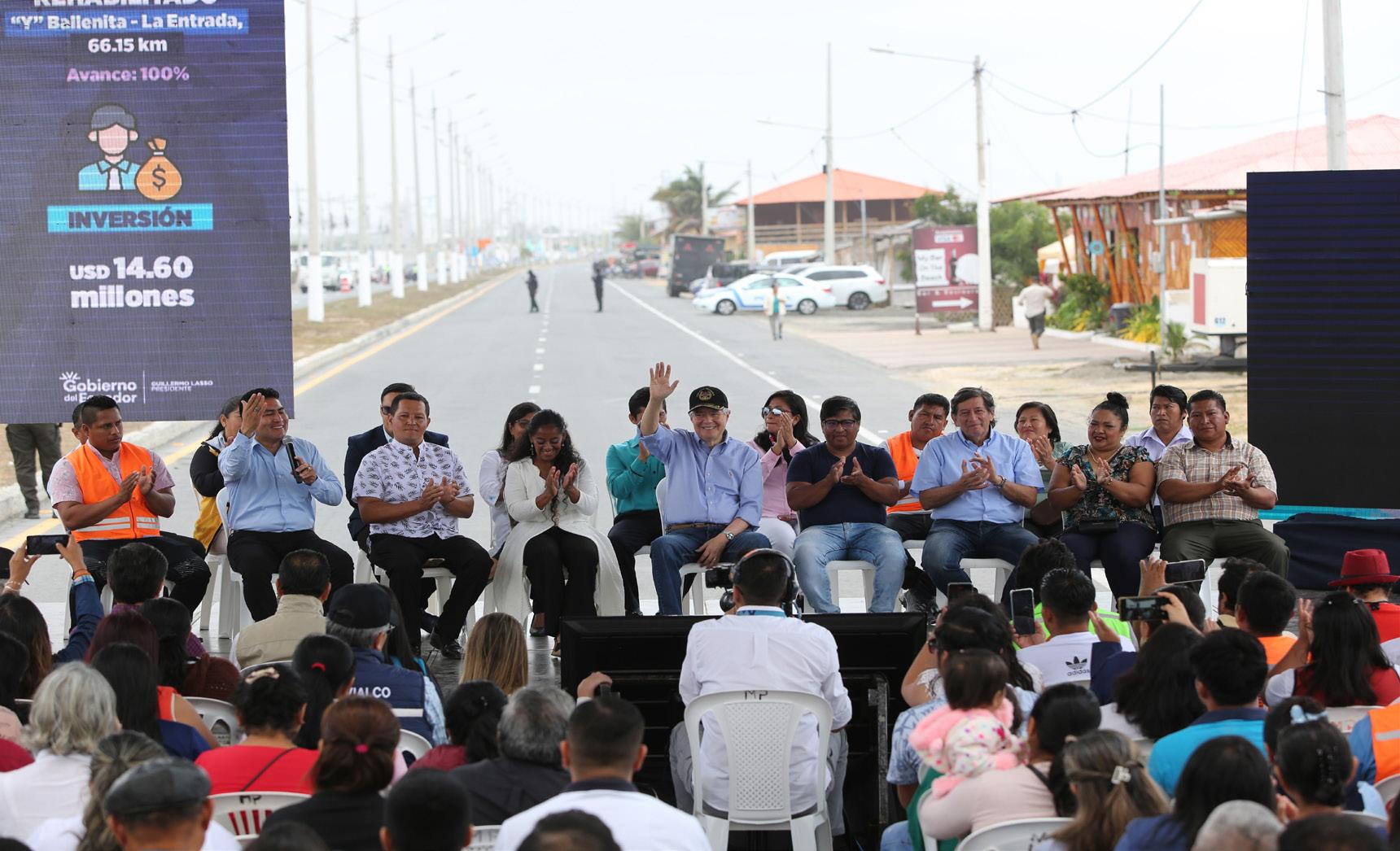 Una nueva infraestructura vial entregó el Presidente de la República, Guillermo Lasso Mendoza, con el propósito de garantizar óptimas condiciones de conectividad a los ecuatorianos. Por ello, esta mañana presentó a la población de Santa Elena, el tramo rehabilitado La “Y” de Ballenita –La Entrada de 66,15 kilómetros que beneficiará a 400.000 habitantes.
