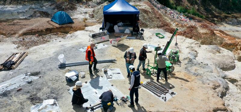 Participantes de la capacitación realizan la toma de muestra de relaves usando equipo de perforación con el fin de identificar la presencia de algún elemento de valor económico que pueda ser reaprovechado.