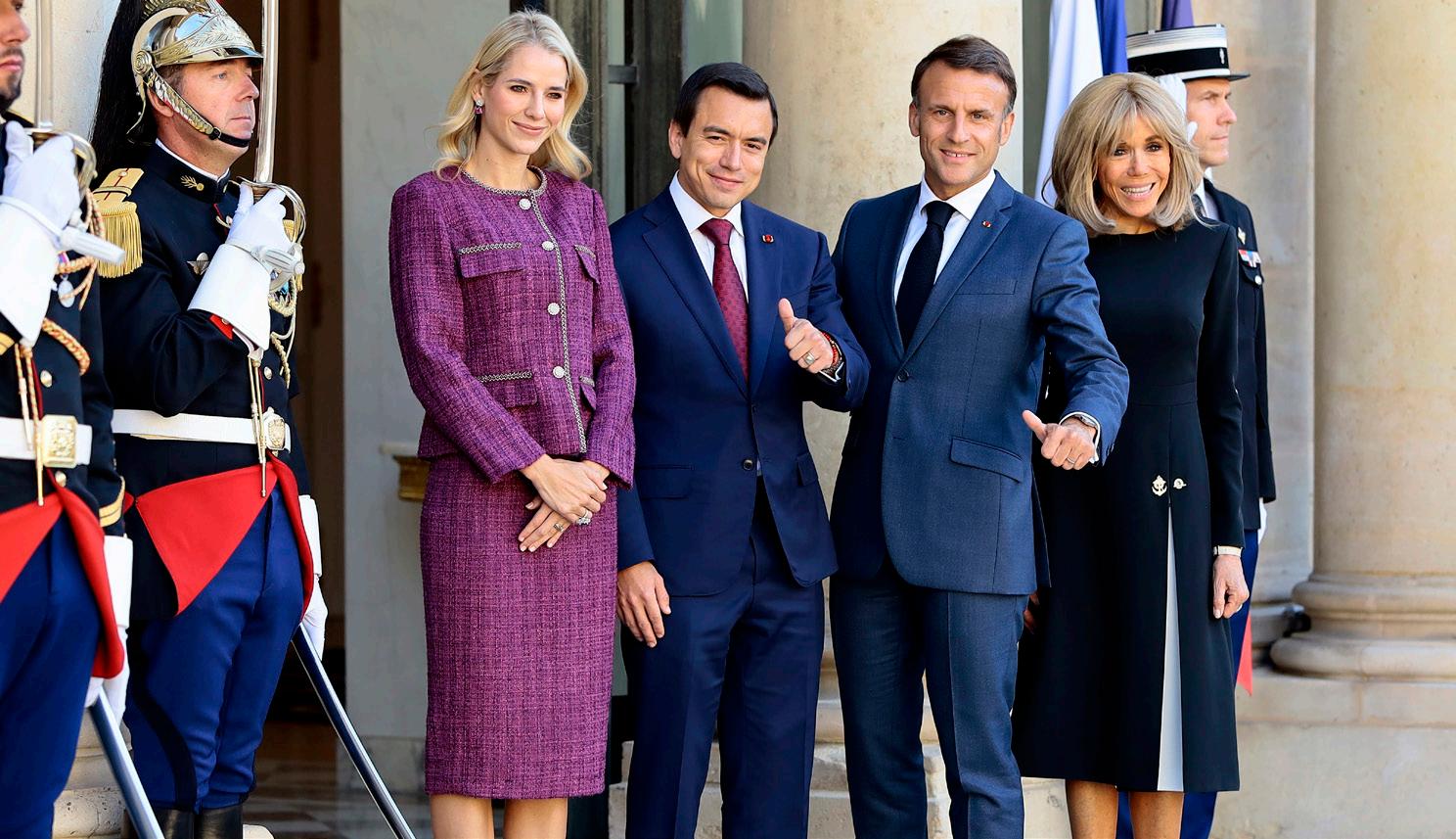 Con unos 30 minutos de retraso respecto a la hora inicial, el presidente ecuatoriano y su mujer se reunieron con Macron y su esposa después de completar una agenda privada en París.