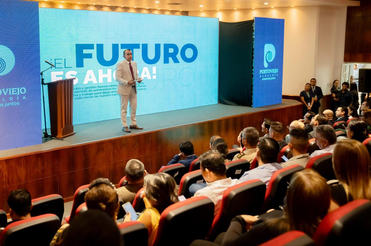 Con un salón de la ciudad colmado, el administrador de Portoviejo, hizo una amplia exposición de sus primeros siete meses de gestión (de mayo a diciembre del 2023) al frente del municipio.