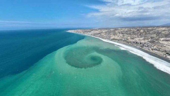 La imagen de un remolino en el mar de Santa Marianita, en la provincia de Manabí, ha sorprendido a algunos usuarios de las redes sociales en Ecuador.
