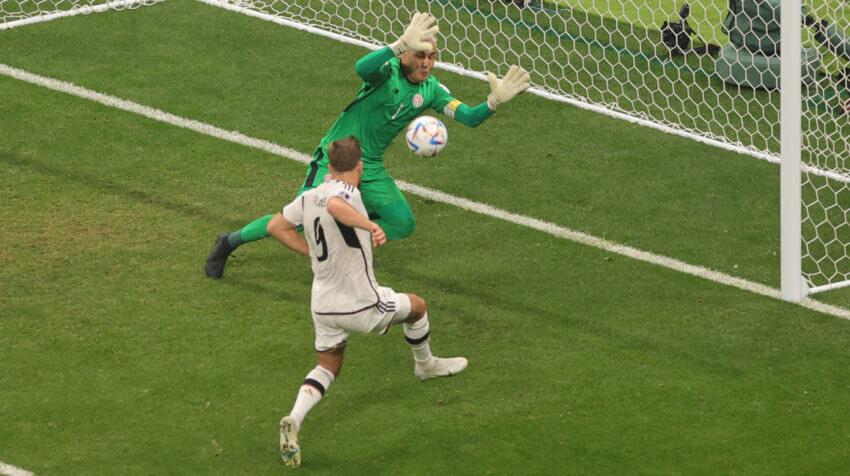 tiguo poderío. El portero Keylor Navas de Costa Rica ante un tiro de Niclas Fuellkrug de Alemania en el Mundial, el 1 de diciem bre de 2022.