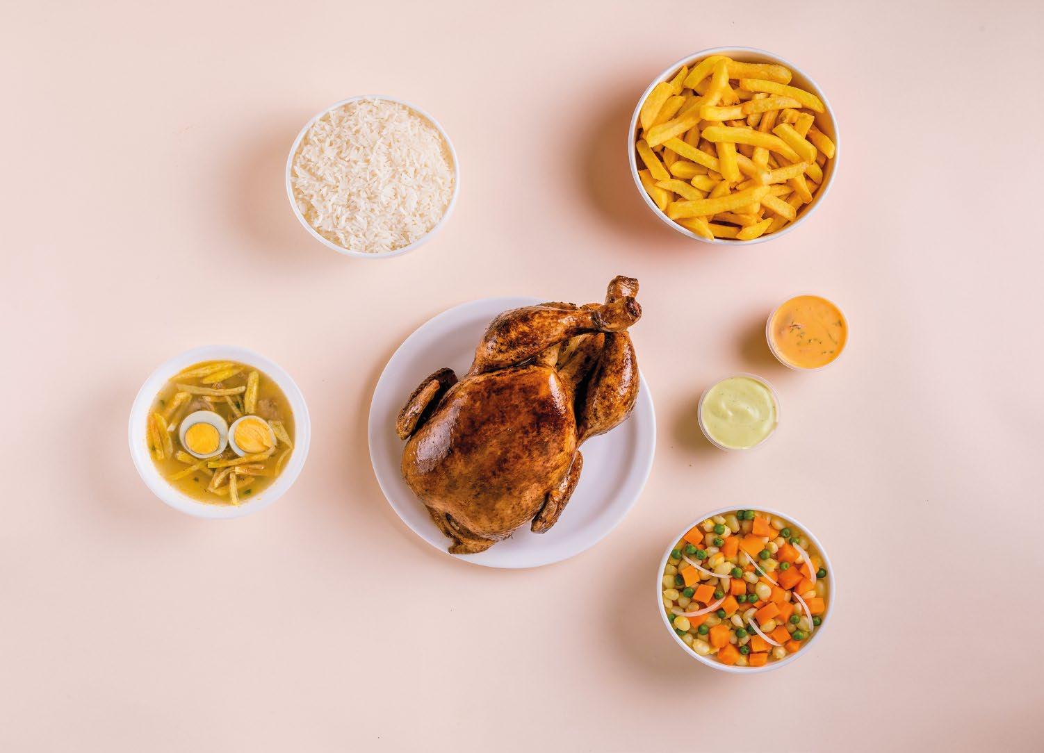 CON POLLO, PAPAS, CONSOMÉ, CHAULAFÁN GRANDE, POSTRE Y GASEOSA DE 1L