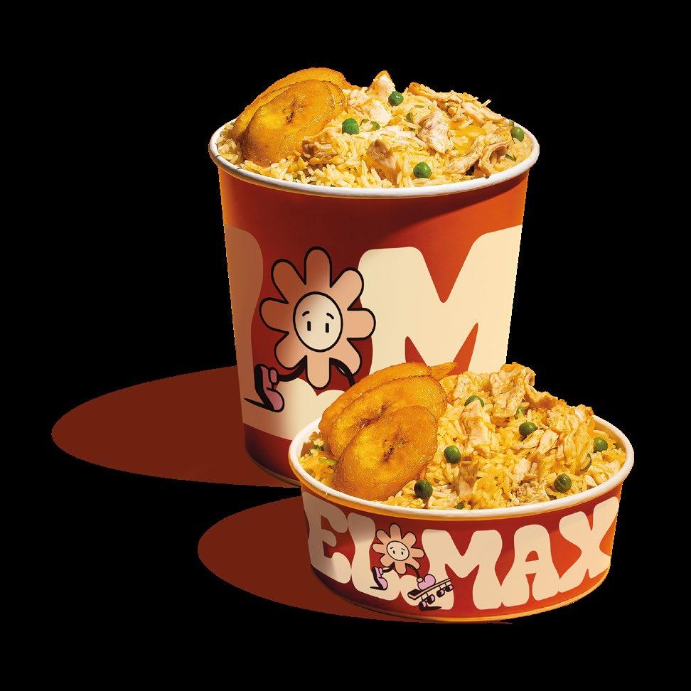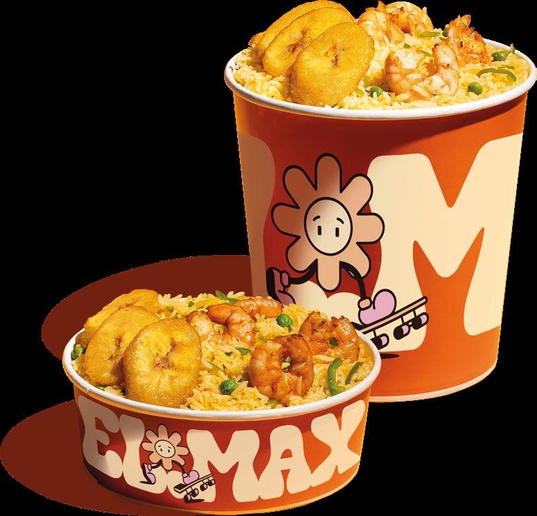 CAMARONES, ARROZ, PIMIENTO VERDE, ARVEJAS, Y MADURO. SHRIMP, RICE, GREEN PEPPER, PEAS AND FRIED SWEET PLANTAIN
