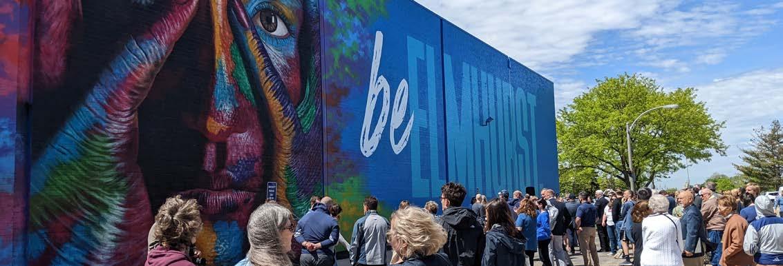 The “Be Bold. Be Elmhurst” mural, located on the north side of campus, further showcases the collaborative experiences among the city of Elmhurst, our faculty and students.