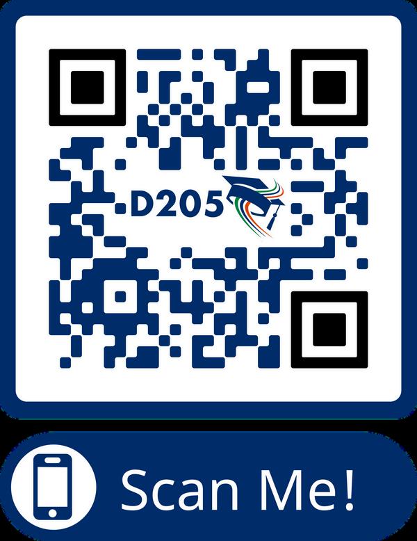 The Certificate of Child Health Examination, Proof of Dental Examination and Proof of Vision Exam may be picked up at your child's school office, the District 205 Center, 162 S. York Street, or downloaded by scanning or clicking on the QR code. Questions may be directed to your child’s school office/health office.