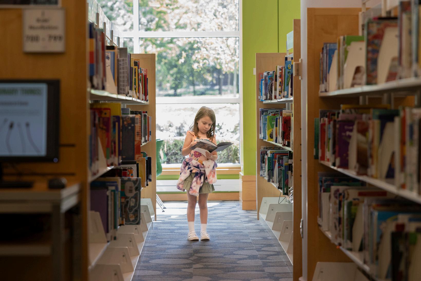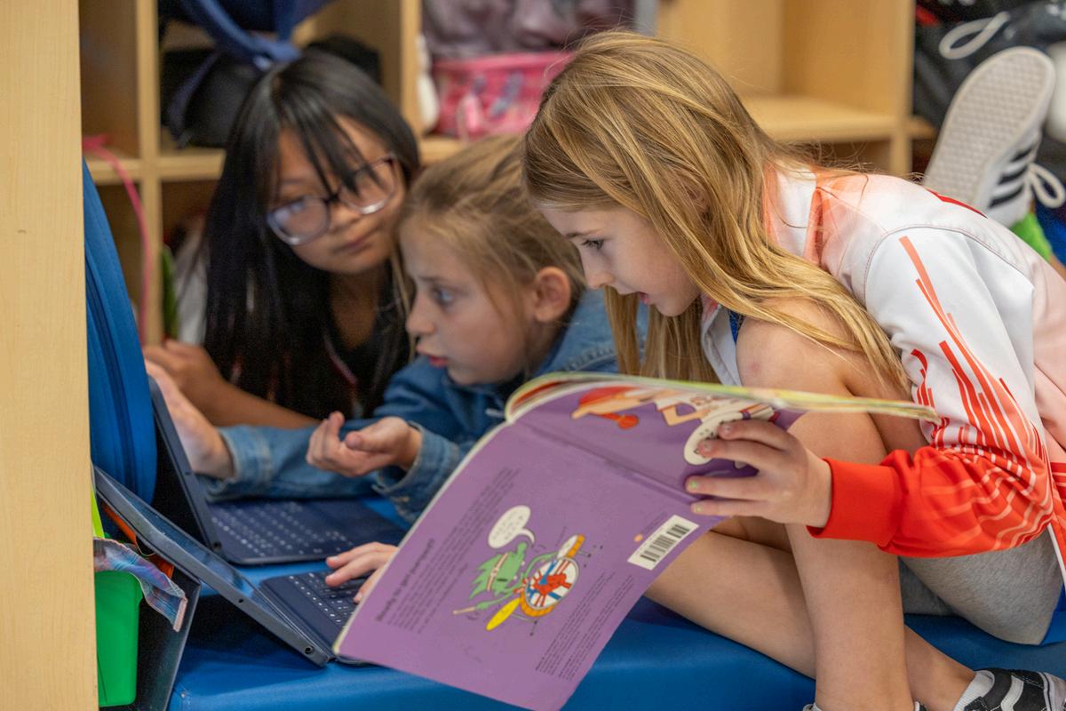 Kindergarten students attend class in the Library Media Center at least once a week where they explore literature and nonfiction texts and participate in related hands-on activities. Students also pursue individual interests as they learn how to self-select from thousands of curated, professionally selected titles to think, create, share, and grow together! Included in this experience are lessons and standards for introducing some of the following topics: