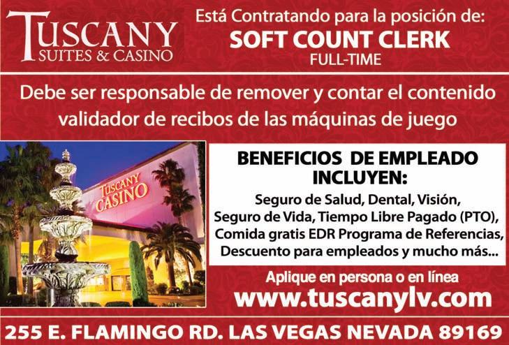 De 30-40 horas por semana, a $16 la hora. Se ocupan documentos legales, record limpio y mínimo 3 años de experiencia. Llamar al (702) 557-2280 para más información.