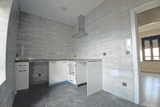 Cocina de una de las casas destinadas al alquiler y, a la derecha, local de propiedad pública reformado para celebrar eventos.