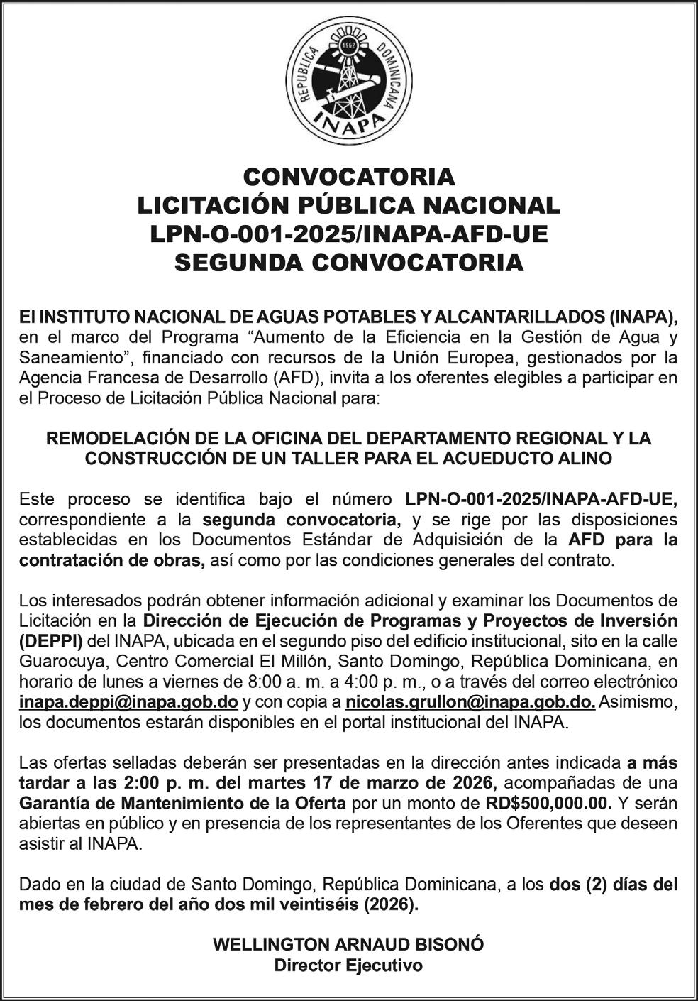 7. DOMINGO ALBERTO VASQUEZ SUAREZ, Segundo Vocal cuyo presidente es quien lo representa ante terceras personas, siendo un total de siete (07) el número de funcionarios de la Junta Directiva. En la ciudad y municipio de Moca, Provincia Espaillat, República Dominicana a los dos (2) días del mes de FEBRERO del año Dos Mil VEINTISEIS (2026).