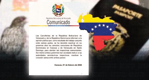CARACAS. - El Gobierno de Venezuela informó este domingo que acordó con República Dominicana reactivar los servicios consulares, así como la conexión aérea entre ambos países, luego de que en julio de 2024 el país suramericano rompiera relaciones con la isla porque esta cuestionó el resultado de las elecciones presidenciales en las que el ente electoral proclamó la victoria de Nicolás Maduro.