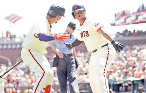 en la temporada, y su 14to con San Francisco, salió de su bate a 114.5 mph, convirtiéndose en el jonrón de mayor fuerza de los Gigantes desde que Statcast comenzó a registrarlo en 2015. El toletero de 28 años ba-