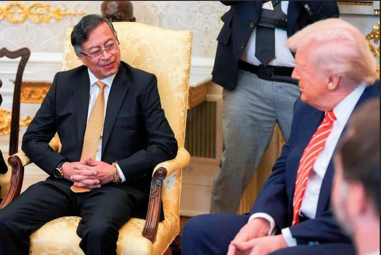 Trump. Sus capos no están en Colombia y hay que perseguirlos», dijo Petro tras el encuentro en la Casa Blanca. Petro defendió su política de sustitución de cultivos de coca y de perse -