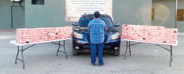 En el interior del vehículo fueron encontrados ocultos 300 paquetes de cigarrillos marca Capital, color rojo, equivalentes a sesenta mil 60,000 unidades, que fueron