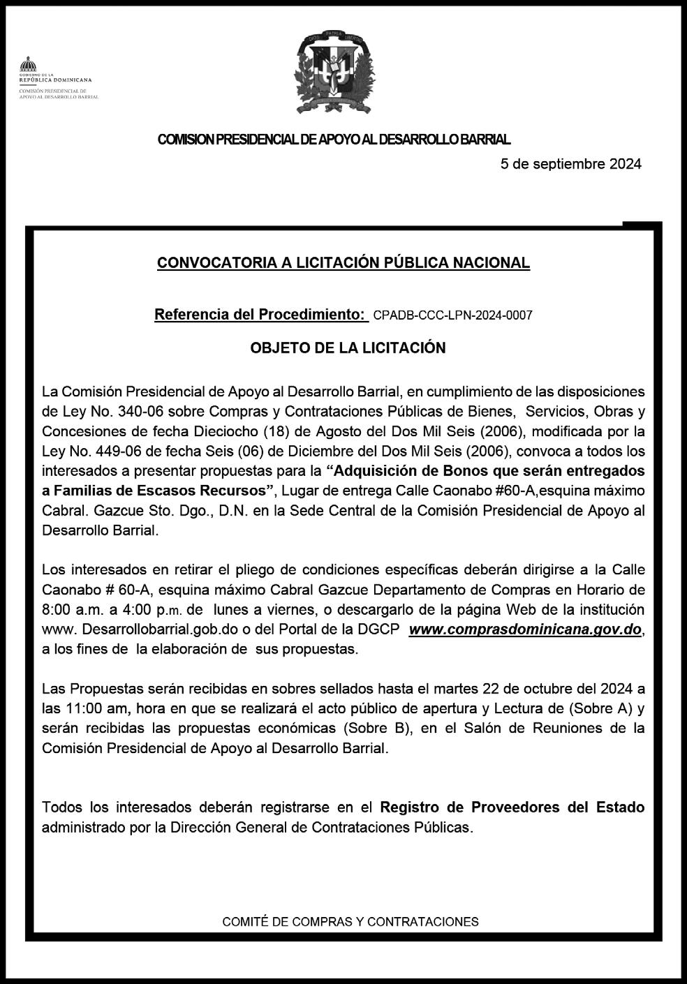 En cumplimiento del Art. 92, Párrafo III, de la Ley 108-05, Ley de Registro Inmobiliario, se hace de público conocimiento la pérdida del Certificado de Título Matrícula No. 92-149, inscrito en el Libro 21, Folio 134, d/f 30 de Septiembre del año 1992, que ampara la parcela No. 54-REF-B-10, Distrito Catastral No. 2, del municipio de Nagua, María Trinidad Sánchez, con una extensión de QUINIENTOS SESENTA Y TRES PUNTO DIECISIETE METROS CUADRADOS (563.17 M²), a nombre de CIA. CONSTRUCTORA PLAYA BONITA, S.A., avisar al teléfono 809-841-3754.