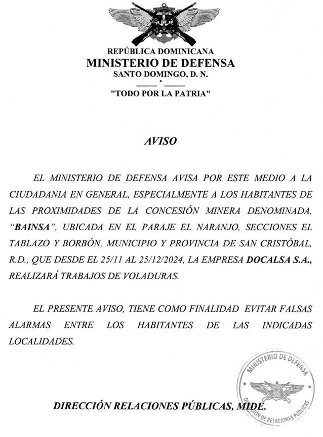Quien suscribe el señor JEFFRY DELANCE PEREZ, dominicano, mayor de edad, soltero, Portador de la Cédula de Identidad No. 4022187119-3 con estudio profesional abierto en la calle 5 casa No.2 Llanos del Ingenio, Santiago de los Caballeros, República Dominicana, TEL:829-859-9188, Email:jeffrydelance03@gmail.com, Agrimensor público Codia 43503 autorizado por la Dirección Regional de Mensuras Catastrales Departamento Norte, en fecha 31 octubre del año 2024, para la realización de los trabajos de DESLINDE, EXP. No. 6622024153617, se le AVISA a los colindantes, a la Dirección De Mensuras Catastrales Departamento Norte, que el día MARTES (17) DE NOVIEMBE DEL AÑO 2024, a las 01:00 PM Daré inicio formal a las operaciones de campo a una porción de terreno que miden 4,998.01 metros cuadrados, dentro de la P. No.723-B del Distrito Catastral No.04, ubicado en la carretera la ciénaga a unos 550 metros al oeste de la iglesia