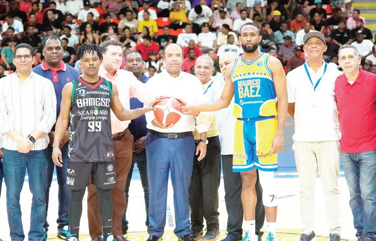 Samuel Pereyra, presidente ejecutivo de Banreservas, realizó el saque de honor previo a darle inicio al tercer partido de la ronda final. Rojas Pereyra, invitado especial del club Mauricio Báez y de Abadina, fue acompañado del presidente de esa entidad