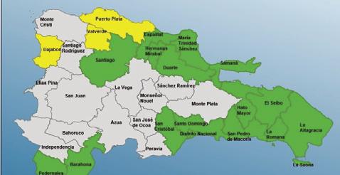verde están Barahona, Santo Domingo, Hermanas Mirabal, Hato Mayor, Duarte, Samaná, María Trinidad Sánchez, La Romana, Espai-