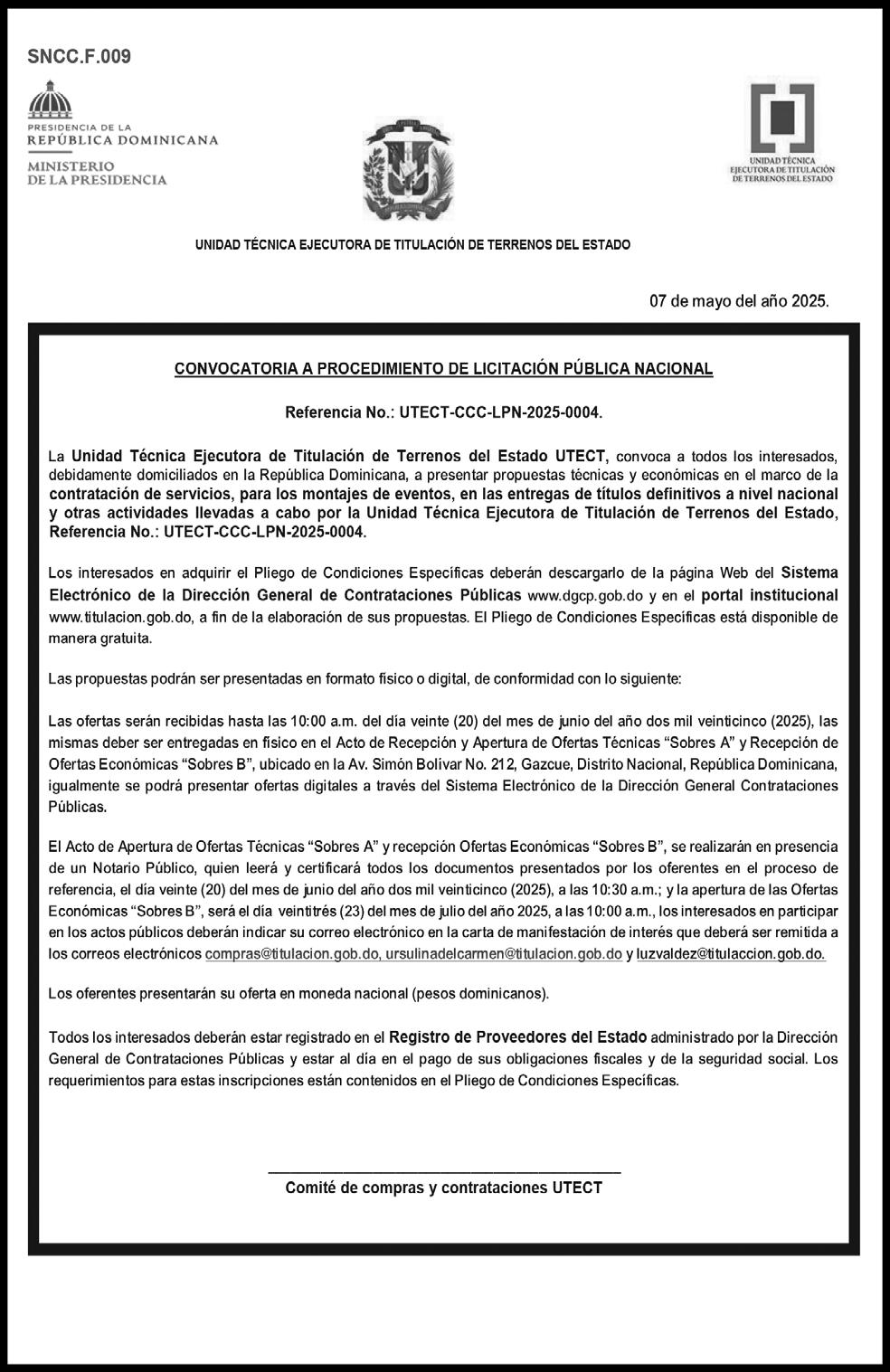 VISTA: La autorización, Exp. No. 6622025063115, dictada por la DIRECCIÓN REGIONAL DE MENSURAS CATASTRALES DEPARTAMENTO NORTE, de fecha 28 de Abril del año 2025, SE AVISA AL PÚBLICO EN GENERAL Que el día treinta (30) del mes de Mayo del año 2025, a las 10:00 A.M. el Agrimensor Danni Javier Abreu Díaz, Cedula No. 047-0102490-5, Codia No. 19218, tel. 809-846-1691, Email danni_abreud@hotmail.com. calle No. 1, casa No. 18 Arenoso, La Vega. Rep. Dom. dará comienzo a la Mensura Catastral para REGULARIZACION PARCELARIA de una porción de terreno dentro del ámbito del Solar No. 11, Manzana No. 8 del Distrito Catastral No. 01, ubicado en calle B, casa No-25, de la Urbanización Tamborigil, Provincia de Santiago, Municipio Tamboril, propiedad de la señora: ROMA ALTAGRACIA BONILLA GUICHARDO. Coordenadas Geográficas 19.480070, -70.607525. Quedan citados a todos los colindantes y demás personas interesadas.