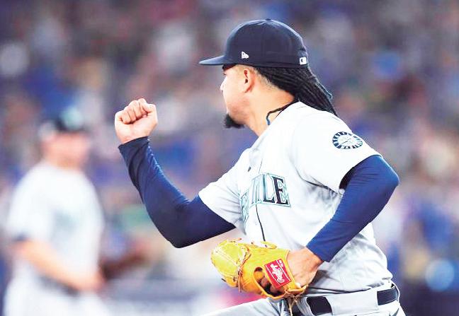 TORONTO — Luis Casti llo y Andrés Muñoz se com binaron para conseguir una blanqueada, Cal Raleigh bateó un jonrón de dos ca rreras y los Marineros de Se attle disputaron ayer su primer juego de postem porada desde 2001, lleván dose la victoria por 4-0 sobre los Azulejos de To ronto.