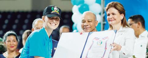 Durante el acto, encabezado por la vicepresidenta Raquel Peña y el ministro de Defensa, teniente general Carlos Luciano Díaz Morfa, el director general del Servicio Militar Voluntario, mayor general Amílcar Fernández Tejada, dijo que “tres egresados meritorios de este programa ganaron becas para estudiar