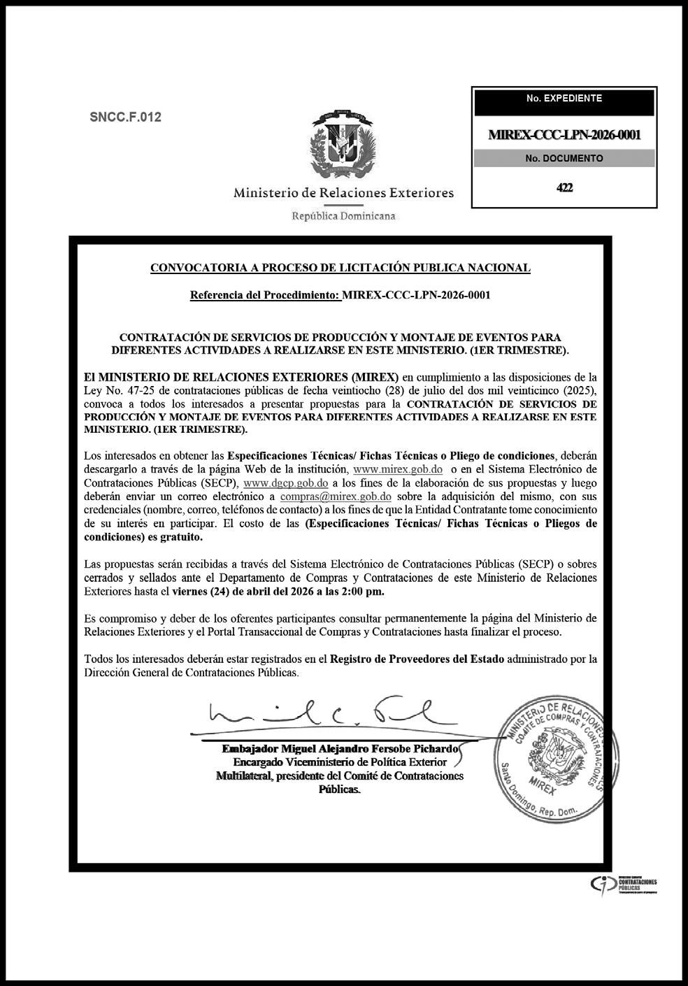 En el acto de investidura participarán junto al presidente Abinader, la primera dama Raquel Arbaje y la hija de ambos, Adriana Abinader Arbaje, y el ministro de Relaciones Exteriores, Roberto Álvarez.