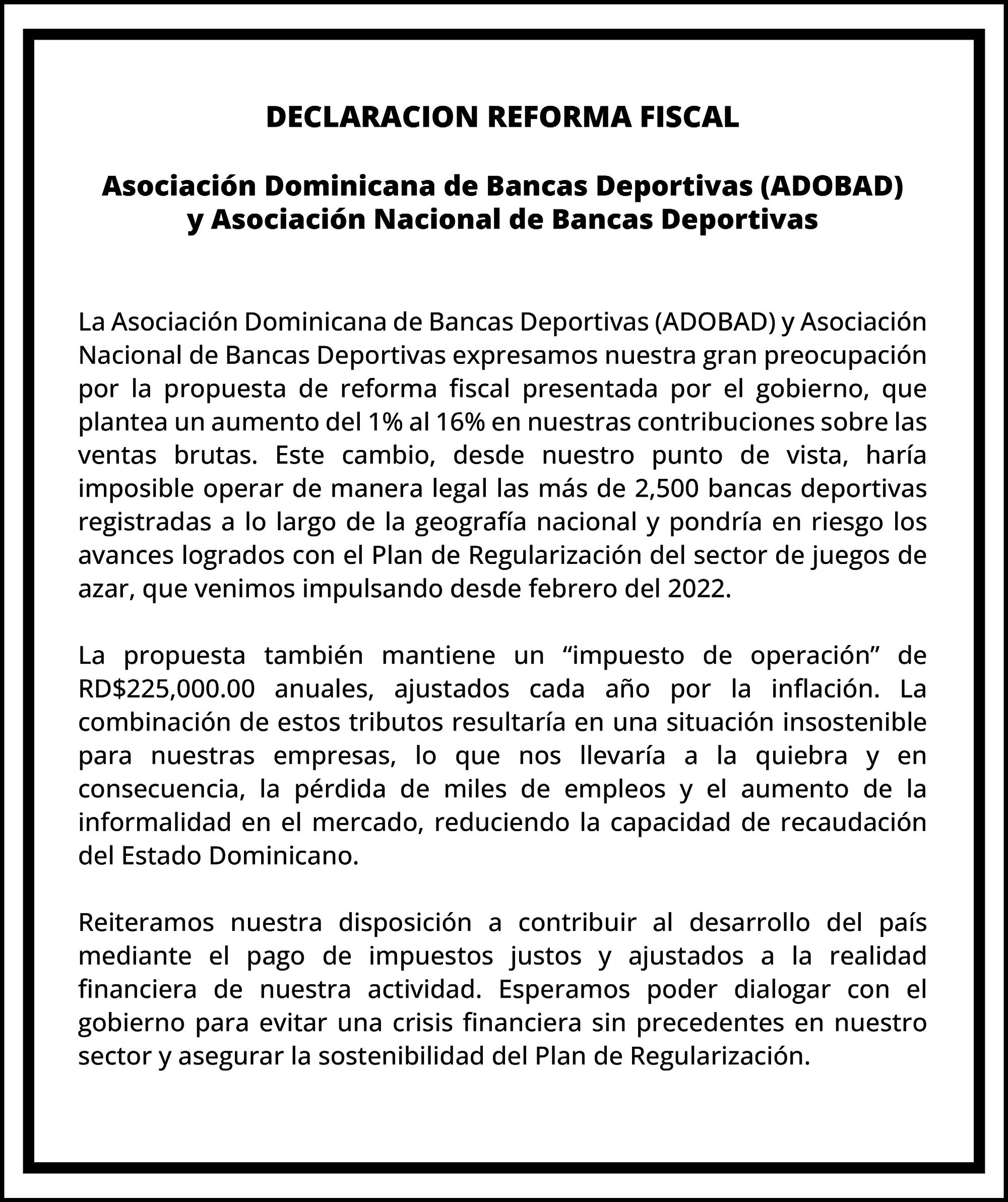 SANTO DOMINGO. - El Consejo Nacional de la Empresa Privada (Conep), reafirmó su compromiso de promover un diálogo amplio y constructivo en torno al proyecto de ley de Modernización Fiscal presentado por el Gobierno.