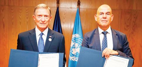 José P. Monegro, presidente del Comité Organizador y el director ejecutivo de Arajet, Víctor Pacheco, firmaron el acuerdo.
