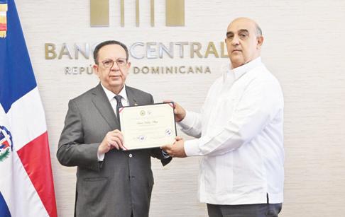 SANTO DOMINGO.- El gobernador del Banco Central de la República Dominicana (BCRD), Héctor Valdez Albizu, recibió un reconocimiento del Colegio Dominicano de Periodistas (CODECO), en colaboración con la Universidad Católica de Santo Domingo (UCSD), entregado por el presidente del gremio económico, José Francisco Peña Domínguez, quien elogió “la notable trayectoria profesional del gobernador desarrollada en instituciones de primer orden en la República Dominicana, especialmente en el Banco Central y el Banco de Reservas, donde a lo largo de décadas con sus conocimientos y experiencia, ha contribuido con la economía de la nación, en un marco de estabilidad macroeconómica, de impulso al crecimiento y de resaltables condiciones para la inversión” . El reconocimiento del gremio al gobernador, coordinado con la alta casa de estudios, establece que es en “honor a su destacada gestión pública y por su valiosa trayectoria como economista contribuyendo significativamente al desarrollo económico del país” . Peña Domínguez añadió que Valdez Albizu “pertenece a una prominente y prestigiosa generación de economistas en la que se integran figuras de alcance internacional, las cuales han ocupado un papel relevante no solo en el ejercicio de su profesión, sino también como docente. P.15