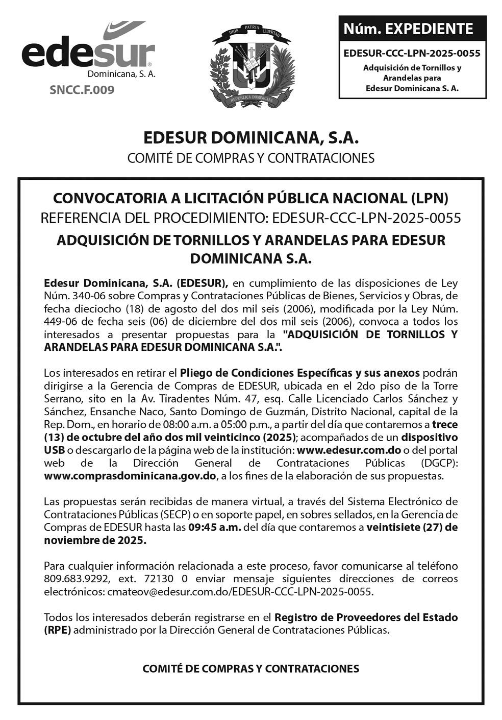 Para cumplir con el artículo 110 de la Ley No. 479-08, General de las Sociedades Comerciales y Empresas Individuales de Responsabilidad Limitada, modificada por la Ley 31-11, así como con el artículo 4.- de los estatutos de ENERCORP SYSTEM, S.R.L. SE CONVOCA a los socios a la sesión de la Asamblea General Extraordinaria que se celebrará jueves 13 de noviembre del 2025, a las 8:30 a.m., en su domicilio comercial calle Miguel Angel Monclu No. 219, Mirador Norte, Edificio Flamboyán, Suite 107, en la ciudad de Santo Domingo., D.N., para discutir los puntos según agenda: Orden del día