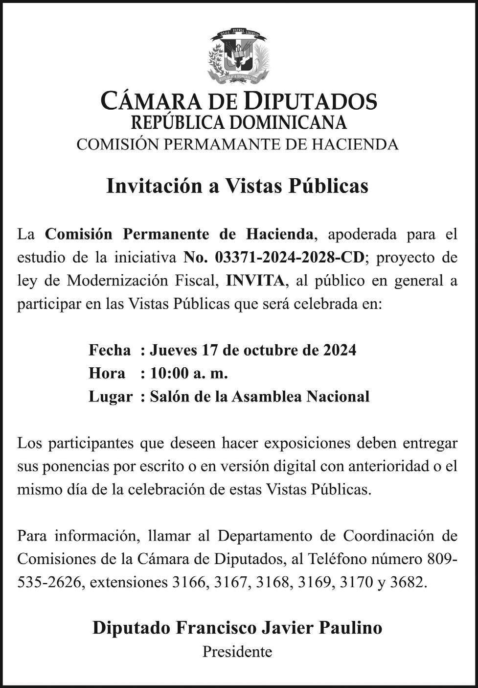“Le digo al país, a los distintos sectores, a los partidos políticos, empresarios, sector sindical, laboral y a la sociedad civil, que nosotros llevaremos a cabo estas reformas sin prisa, pero sin pausa y vamos a escuchar a todos los sectores de la sociedad “, indicó el senador de la provincia Sánchez Ramírez. Exhortó a todos los sectores que quieran ser escuchados a que acudan al Congreso Nacional para participar de los debates.