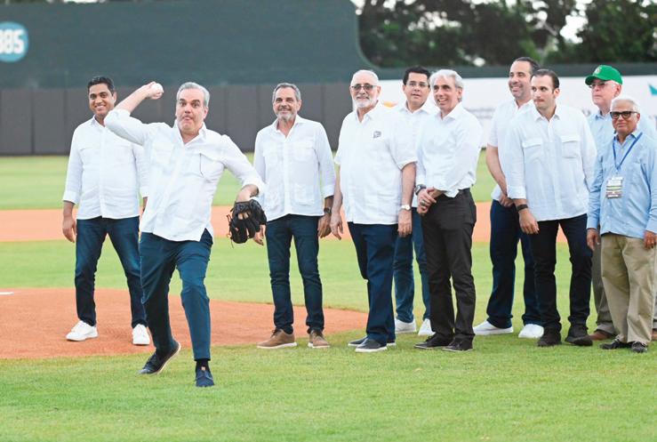 El mandatario también realizó el lanzamiento de la primera bola del partido de pretemporada entre los Tigres del Licey y Gigantes del Cibao, la cual fue recibida por el capitán de los Tigres del Licey, Emilio Bonifacio.