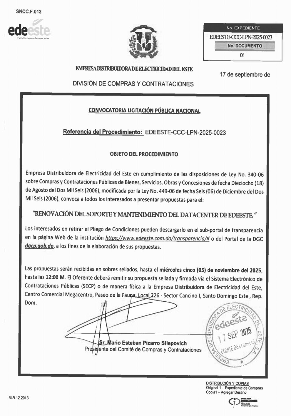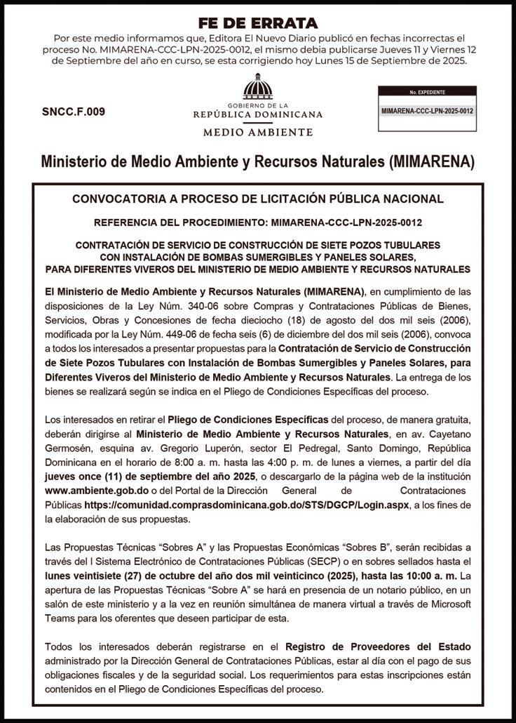 EXPEDIENTE Nº: 6622025138441 Se avisa que el día 03 del mes de octubre del año 2025, a las 10:30 A.M., Mariela Frías Polanco, agrimensora, cédula Nº 047-0209792-6, Codia Nº 33510, con oficina en la Calle Juana Dolores Gómez, esq. Profesor Juan Bosch, Edif. Jumalindo, La Vega, email: mariela18fp@gmail.com, tel. 829-963-6880, iniciará los Trabajos de Regularización Parcelaria, de una porción dentro de la Parcela 215, del D.C. Nº 03, del Municipio de La Vega, Provincia La Vega. Propiedad del señor VICTOR DE JESUS FERNANDEZ ULERIO. Área: 2,043.93 m2. Referencia de Ubicación: Lugar: Las Martínez, Sección: Burende. Desde La Autopista Duarte, Entrando Por La Carretera Las Martinez A 1 Km, Se Encuentra El Inmueble. Coordenadas: Latitud: 19.252662 ° Longitud: - 70.545239 ° Autorización de la Dirección Regional de Mensuras Catastrales Departamento Norte, de fecha 02 de septiembre del año 2025. Quedan citados todos los colindantes y demás personas interesadas.