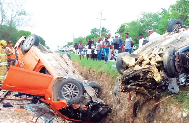 SANTO DOMINGO. – Al menos tres personas falle cieron y tres resultaron he ridas ayer durante un accidente de tránsito en la carretera Guaymate, próxi mo al batey Higueral, a cin co kilómetros al sur de La Romana.