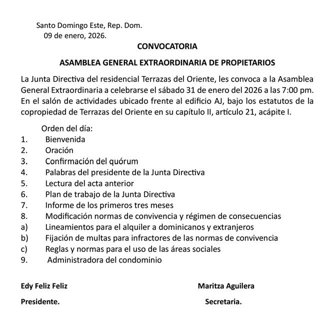 Se ha constituido por tiempo indefinido mediante la Res. No. 0028-2025 d/f 30/12/2025 de la Procuraduría Regional de San Juan de La Maguana la CONFRATERNIDAD DE CENTROS DE PROYECTOS DE DESARROLLO INTEGRAL DEL VALLE (CCPDIV), con domicilio en la Calle C/. Colón No. 01, Esq. 19 de Abril, Mano Guayabo y Prolongación # 23, Villa Liberación, San Juan, R.D, cuyo objetivo es promover el desarrollo integral y sostenible de las comunidades donde operan centros de desarrollo asociados a Compasión Internacional República Dominicana, constituida en fecha 28/5/2025, su primera directiva por tres (3) miembros: Francisco Alberto Sánchez Rozo, Presidente; Rodolfo Evangelista, Secretario; y Santa Lucía Ramírez, Tesorera, conforme a las disposiciones legales vigentes aplicables a las asociaciones sin fines de lucro en la República Dominicana.