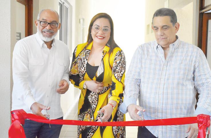 Persio Maldonado, presidente de Fedotenis y Cotecc, junto a Luis Chanlatte, secretario del COD y la doctora Esther Marte Abreu cortan la cinta que deja reinaugurada la unidad médica de Fedotenis.