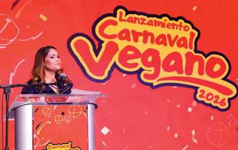 La parte musical de la presentación oficial del Carnaval Vegano 2026 estuvo a cargo de Ebenezer Guerra y Musicólogo, bajo la conducción de la destacada presentadora de TV, Caroline Aquino.