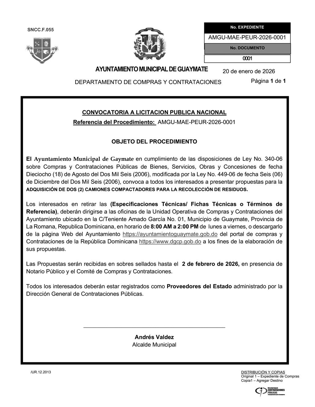 EXPEDIENTE Nº 6622025200481 Se avisa que el día 31 del mes de enero del año 2026 a las 9:00 a. m., Jonathan R. Gutiérrez Jerez, agrimensor, Codia # 36684, cedula 047-0166128-4, oficina Av. Monseñor Panal # 44, La Vega, tel. 849-941-0053, email: jonathan@gutierrezalvarez.net. iniciara los trabajos de Regularización Parcelaria de una porción de terreno dentro de la Parcela Nº 338-C del Distrito Catastral Nº 3, del municipio de Jarabacoa, provincia La Vega, propiedad de los señores; Eddy Ramón García Hernández y Fidelina Yanilda De La Cruz Abreu. Área: 1,470.00 m2. Ubicada en: Por la carretera Federico Basilis, partiendo desde el frente del Hotel Montaña, avanzamos unos 425.00 m., en dirección Sur, doblamos a la izquierda y avanzamos unos 130.00 m., doblamos a la derecha y avanzamos unos 25.00 m., sector El Puerto. Coordenada de referencia: Lat.: 19. 181219, Long.: -70. 587693º. Autorizados por la Dirección Regional de Mensuras Catastrales Departamento Norte, en fecha de 10/12/2025. Quedan citados todos los colindantes y demás personas interesadas.