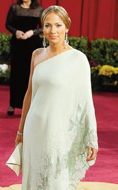 Jennifer Lopez, con vestido tipo túnica de Valentino en los Oscar (2003).