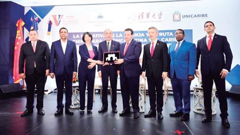 El equipo dominicano junto al embajador de China en el país Chen Luning y el empresario Andrés Dilonex.