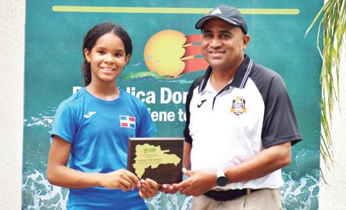 Julianny De La Cruz, premiada por Francisco de los Santos, director técnico del evento.
