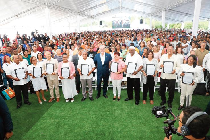 PEDRO BRAND. – El presidente Luis Abinader entregó este viernes en el distrito municipal La Guáyiga 2,100 títulos de propiedad que impactará de manera directa a igual cantidad de familias de esta zona.