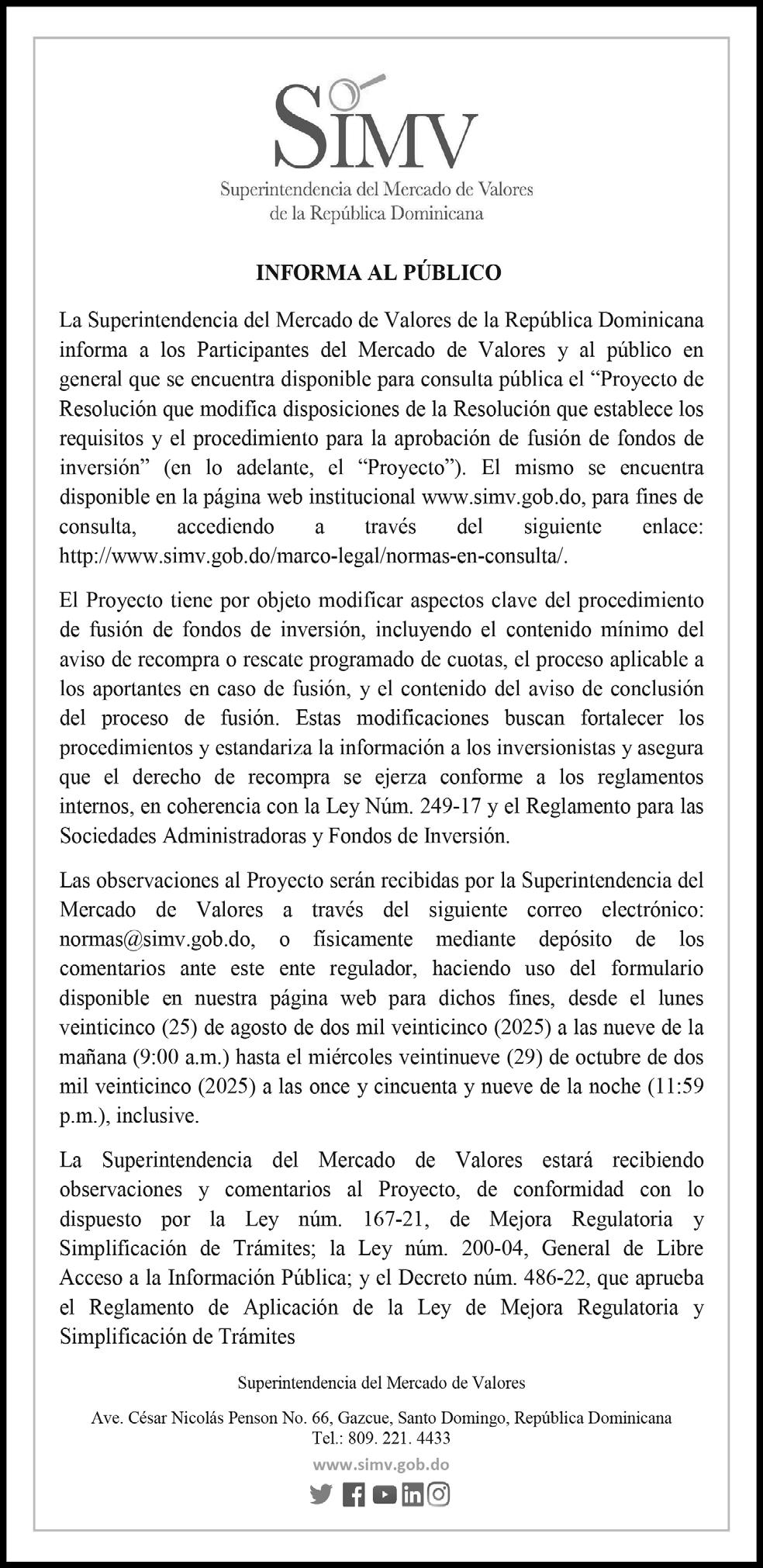 BCRD INFORMA SE HA EJECUTADO 60 % DEL PROGRAMA DE LIQUIDEZ DE RD$81 MIL MILLONES 15.2 MILLONES DE