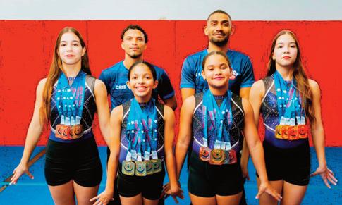 Equipo del Mega Gym, Victoria Knupper, Miranda Torres, Dana Hernàndez y Valentina Knupper Checo, detrás Christopher Turbí y Melvin Rodríguez.