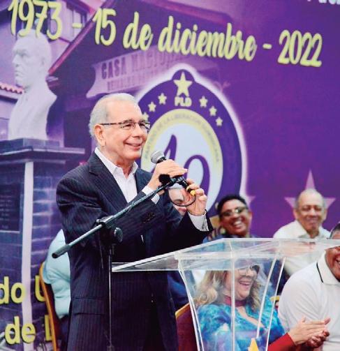 SANTO DOMINGO.- El expresidente de la República y presidente del Partido de la Liberación Dominicana (PLD), Danilo Medina, resaltó los aportes de esa organización política al progreso y desarrollo del país, conquistas que se han tirado por la borda en la presente gestión del Gobierno.