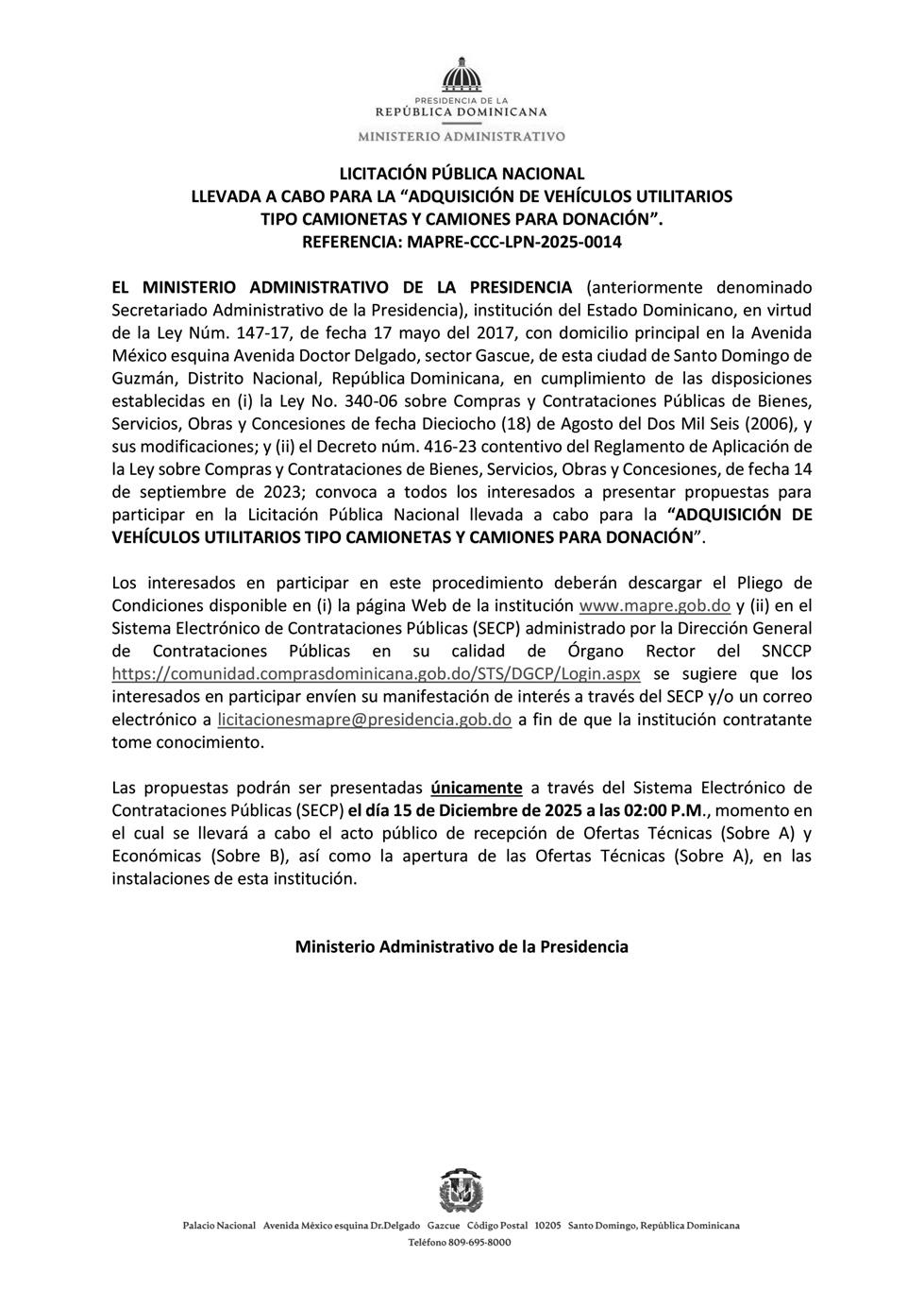 Exp. 6622025161621 se avisa que el día 16 del mes de noviembre, del año 2025, a las 9:00 AM, el agrimensor Enmanuel Antonio Mejía De León, Cédula N.º 402-2237647-3, CODIA N.º 44889, con estudio profesional abierto en la C/5, #3, San Gerónimo, Los Pomos, La Vega dará inicio a los Trabajos de Plano Definitivo de 2 porciones, dentro de la Parcela N.º 698, D.C. N. º 05, del Municipio de Jarabacoa, Provincia de La Vega. Propiedad de ETANISLAO CALDERÓN PERALTA, Área: 5,573.66 m2. ubicaciones: Porción #1 En Corocito, Carretera Belarminio Ramírez, A 20 metros al norte de la Escuela Basica Rural corocito. Porción #2 En Corocito, Carretera Belarminio Ramírez, A 621.27mts Al Norte de la intersección con La Calle Los Corocito - Los Cafeces, del lado Izquierdo se encuentra el Inmueble. En las coordenadas Latitud y Longitud: 19.127144, -70.682913 y 19.125726, -70.684106. Autorizados por la Dirección Reg.de Mensuras Catastrales Depto. Norte, en fecha 14/10/2025. Quedan citados todos los colindantes y demás personas interesadas.
