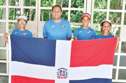 El equipo nacional femenino Julianny De la Cruz, Alejandra García y Camila Santana, junto al capitán José Manuel Estrella.