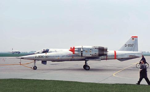 Heinkel y Messerschmitt se unieron para desarrollar el EWR VJ 101 que consta de 6 motores. A diferencia de otros aviones con pequeños reactores, este no contaba con un motor principal más grande, así que quién sabe que habría pasado en caso de un fallo de motor. El VJ 101 era un demostrador de tecnología de despegue y aterrizaje vertical para un caza planeado.