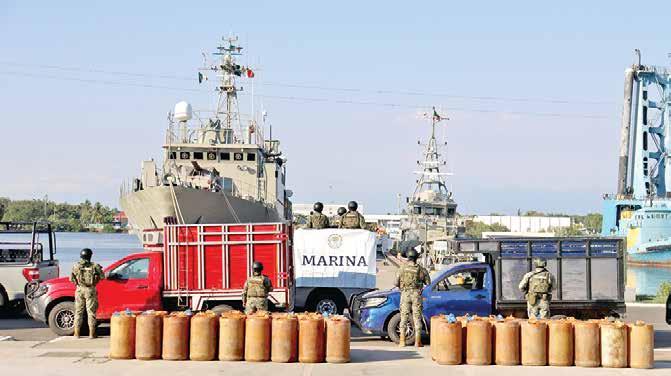 Suchiate, Chiapas; 31 de Enero.- La Secretaría de Marina a través de la Armada de México, por conducto de la Vigésima Segunda Zona Naval, informa que personal naval llevó a cabo el aseguramiento de dos vehículos, 50 bidones con hidrocarburo, así como un arma de fuego de uso exclusivo de las Fuerzas Armadas, en inmediaciones del municipio de Suchiate, Lo anterior, se llevó a cabo durante recorridos de vigilancia terrestre en líneas férreas del mencionado municipio, por parte del personal de Infantería de Marina, quienes observaron dos vehículos tipo redilas estacionados de manera incorrecta, cuyos conductores al percatarse de la presencia del personal naval se dieron a la fuga. Al realizar la inspección de los vehículos se encontraron en el interior de las redilas un total de 50 bidones con combustible. Los bidones son de una capacidad aproximada de 76 litros cada uno, parcialmente llenos de un líquido con las características de combustible diesel, un arma de fuego con un cargador y dos cartuchos útiles, mismos que fueron entregados a la Fiscalía General de la República para la integración de la carpeta de investigación correspondiente. De esta manera, la Secretaría de Marina a través de la Armada de México, refrenda su compromiso de evitar los delitos cometidos en materia de hidrocarburos, actuando siempre apegados al Estado de Derecho, con el objetivo de garantizar el bienestar de las familias mexicanas. EL ORBE / Roberto Corado Mosqueda.