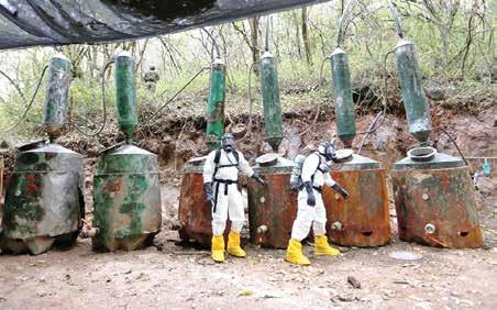 En el caso más reciente, en operativos de reconocimiento terrestre, el ejército, en las comunidades de Canario, Carbonera, Canamaca, San Román, Sanalona, El Pozo y Tierra Blanca, tierra blanca, en la jurisdicción del municipio de Culiacán, descubrieron los asentamientos de procesamiento de las drogas sintéticas.